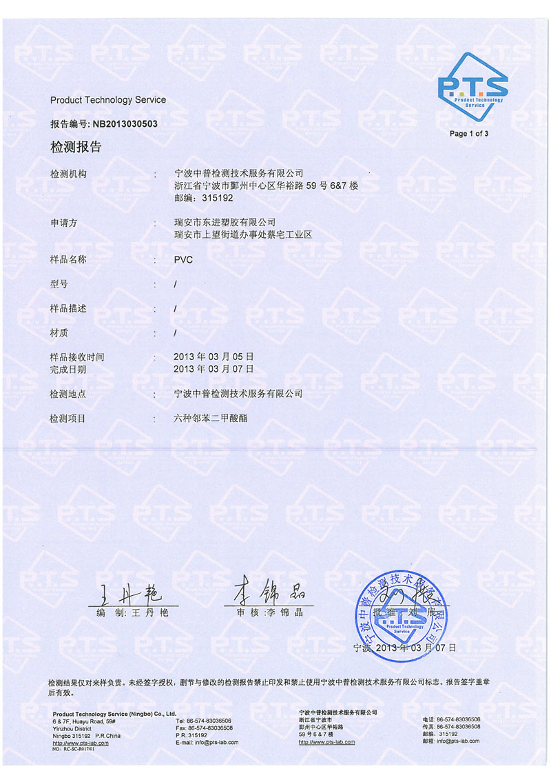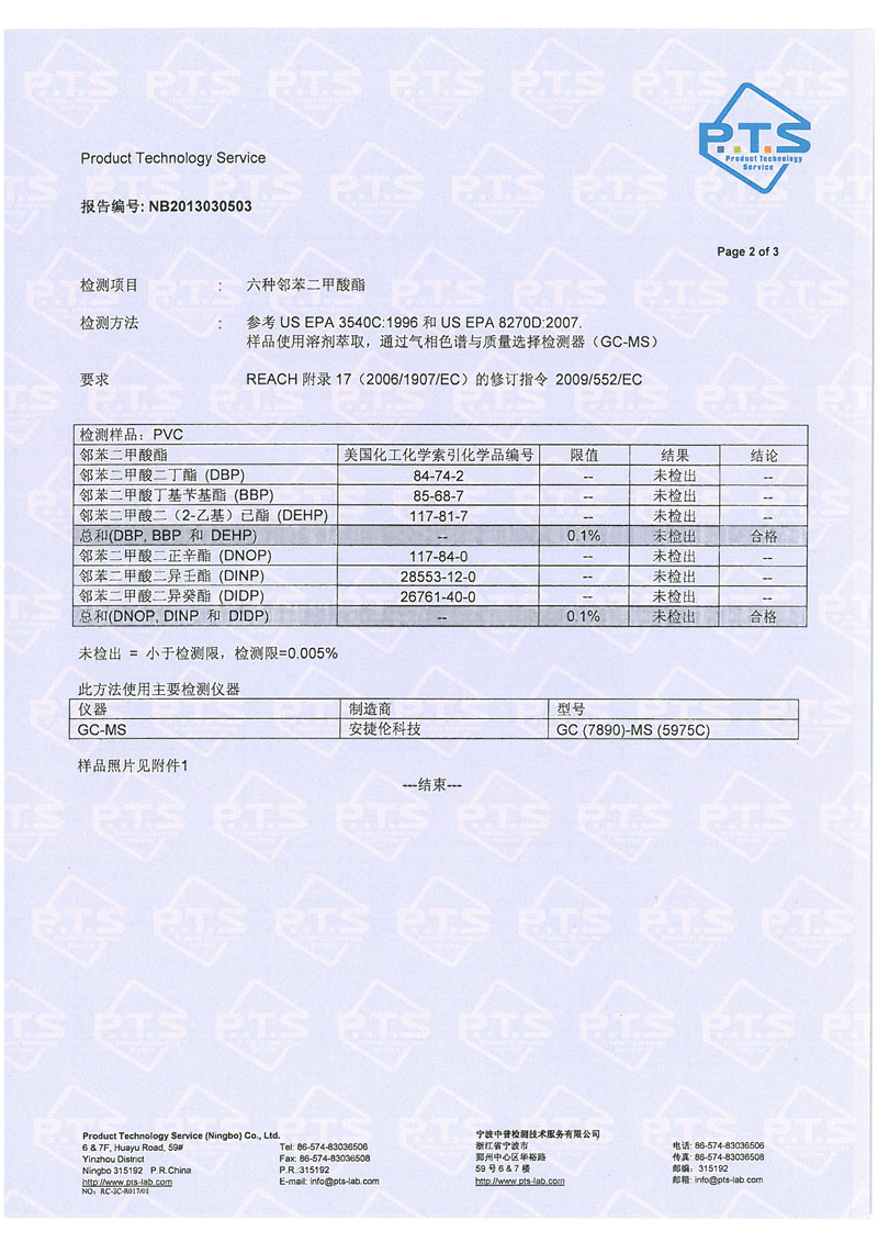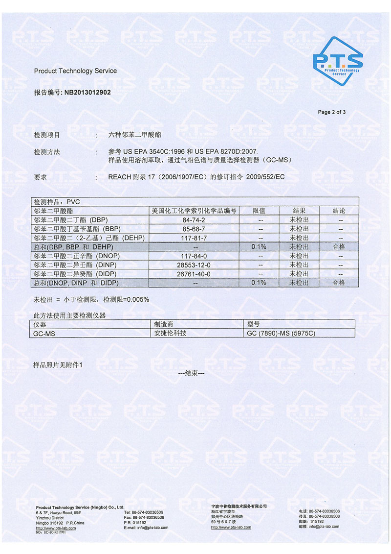 产品符合欧盟法规2009552EC邻苯二甲酸盐含量要求,6种0.05%