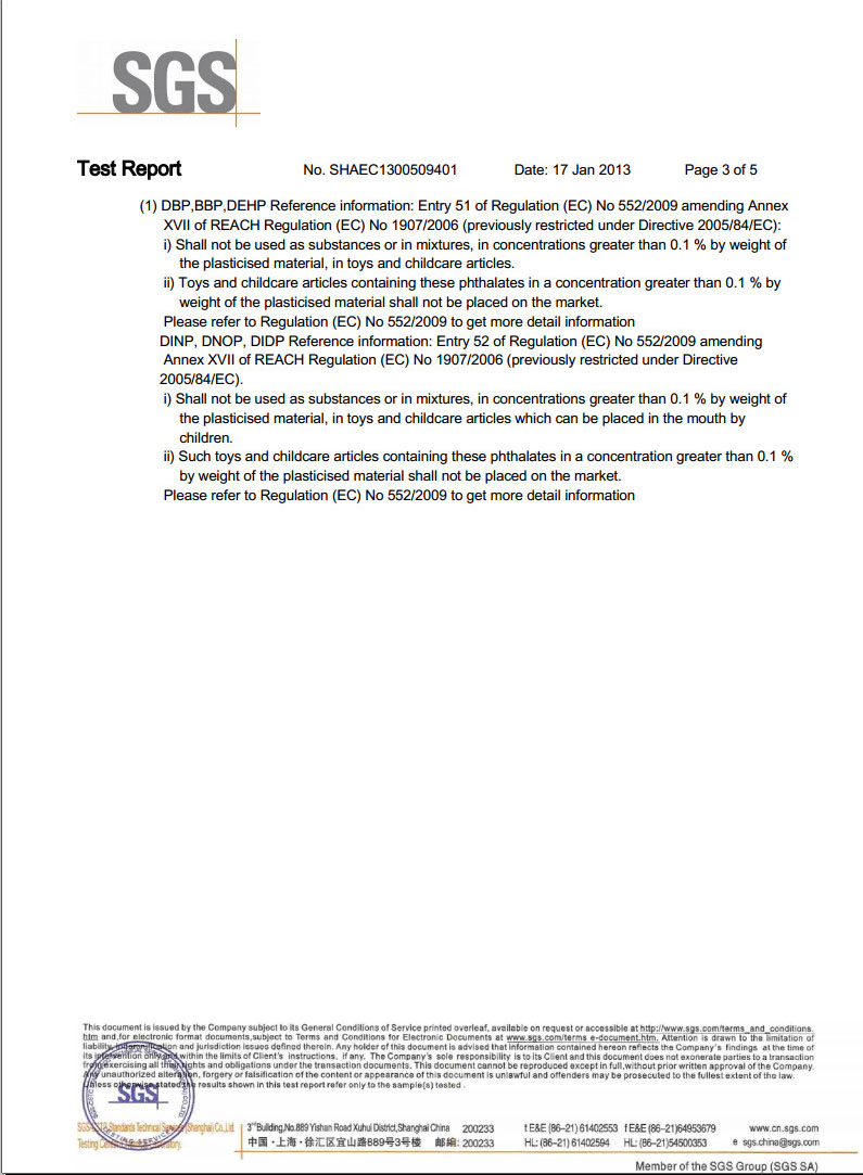 产品符合欧盟标准EN14372:2004邻苯二甲酸盐含量要求,16种0.01%