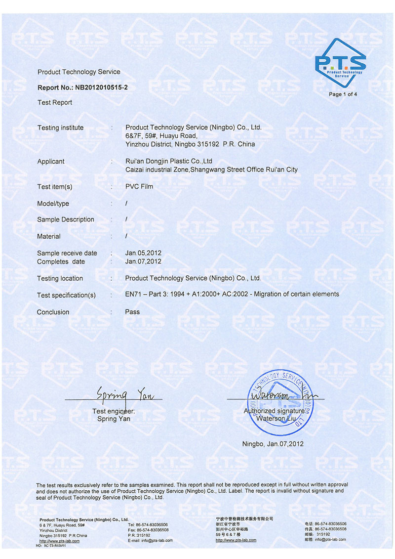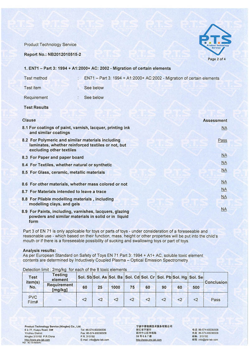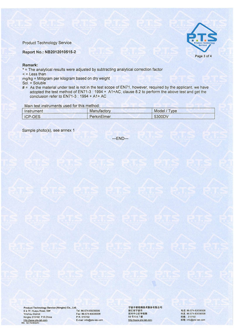 产品符合欧盟指令EN71-part3防八项重金属要求