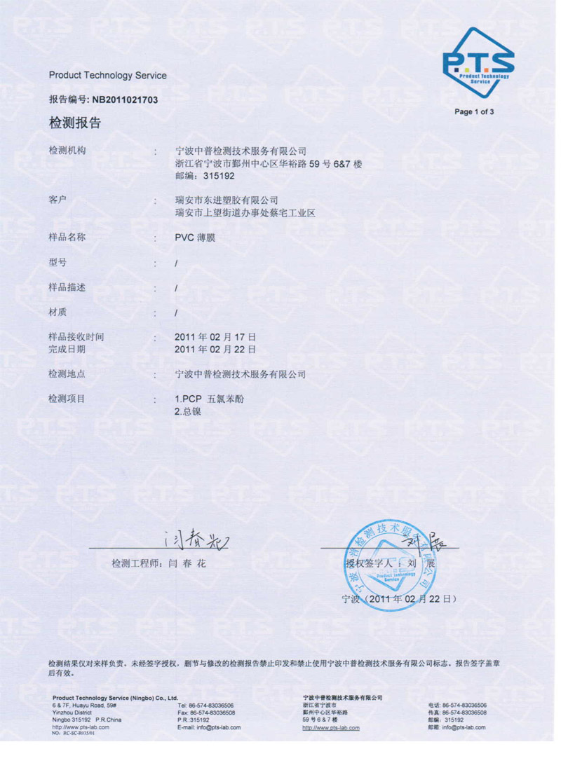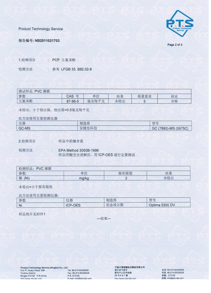 产品不含PCP五氯苯酚,总镍